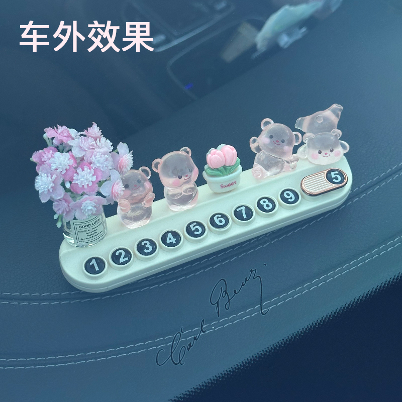 饰品 汽车临时停车牌挪车电话牌车内装 粉色小熊车载号码 牌2025新款
