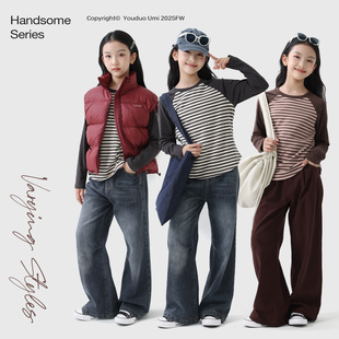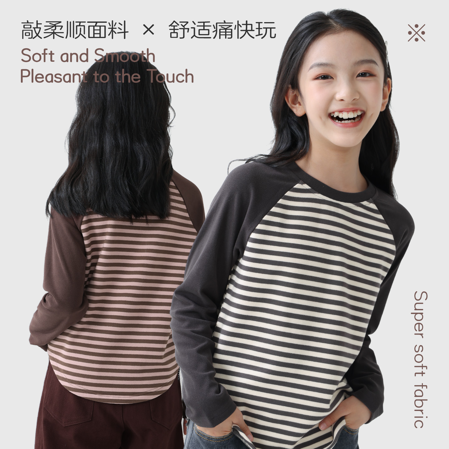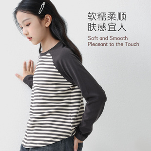氧气超好看上衣童装 女童长袖 儿童条纹休闲打底衫 新款 T恤2025秋季
