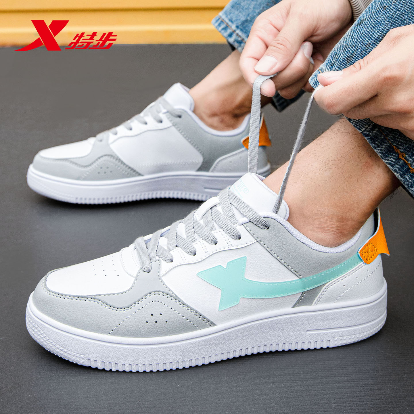 新款 2025秋季 小白鞋 空军一号休闲鞋 特步板鞋 子轻便皮面运动鞋 男鞋
