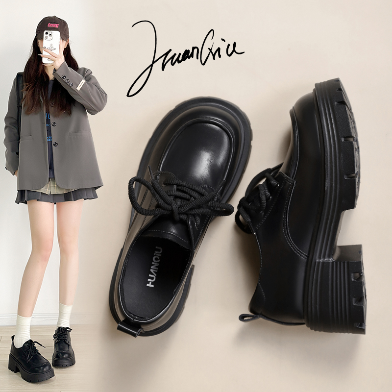 女2025秋季 黑色jk单鞋 新款 子英伦风小皮鞋 配裙子鞋 环球厚底乐福鞋