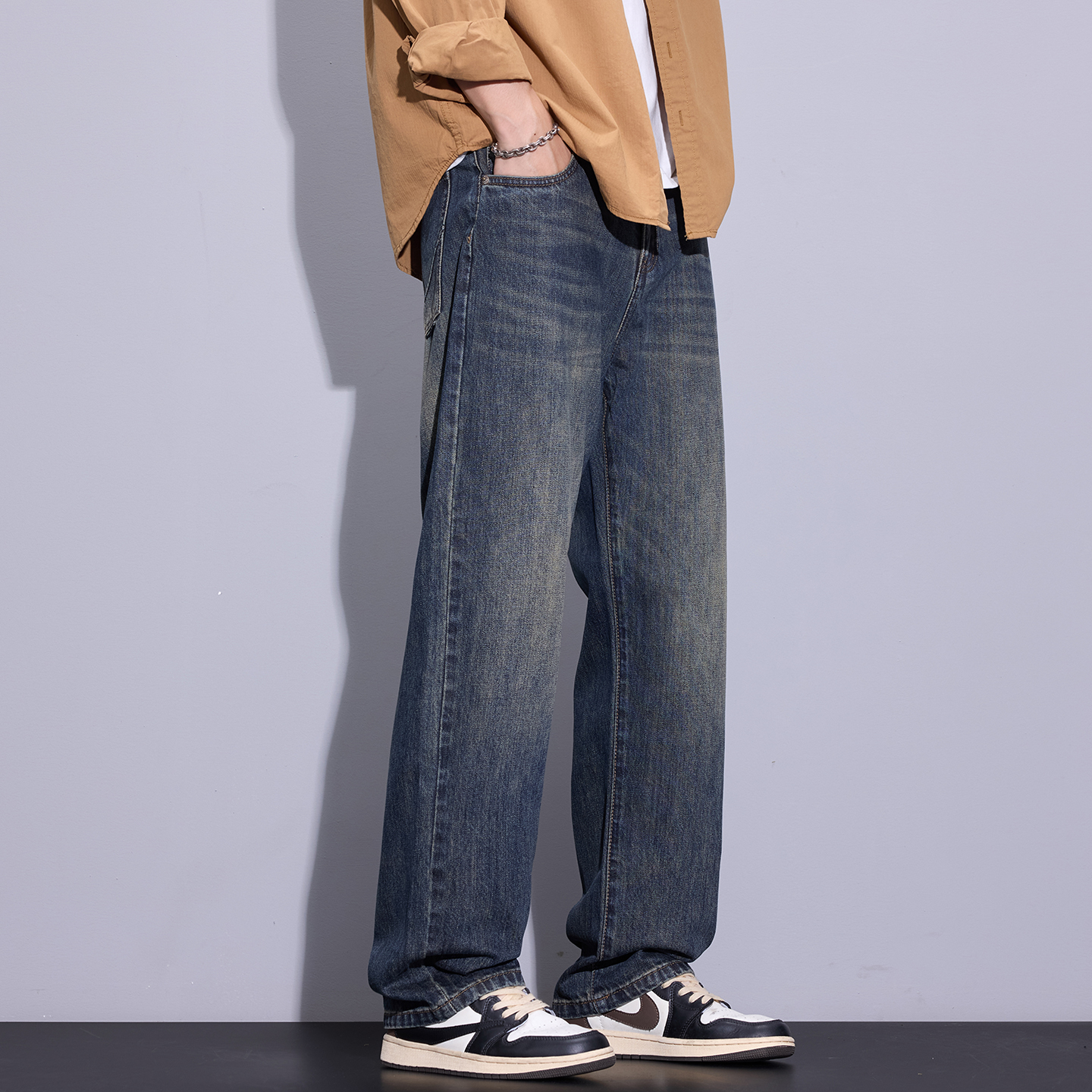 男款 Kuvine2025秋季 潮流水洗复古cleanfit垂感宽松直筒百搭牛仔裤
