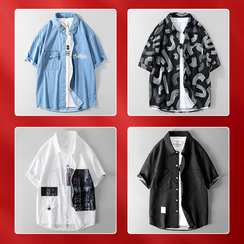 时尚 外套男新款 百搭上衣特惠 高级感痞帅休闲宽松衬衫 清仓捡漏夏季