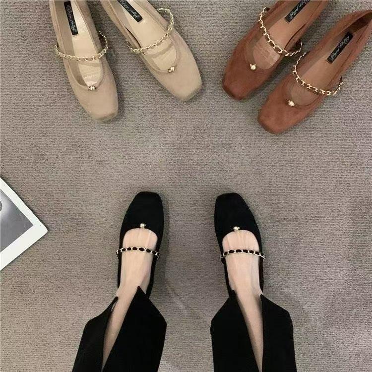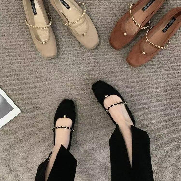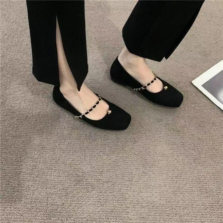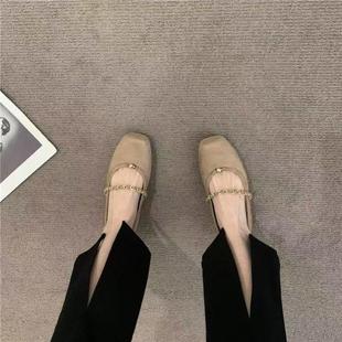 复古豆豆鞋 女2025年春秋新款 法式 平底绒面方头玛丽珍单鞋 时尚 爆款