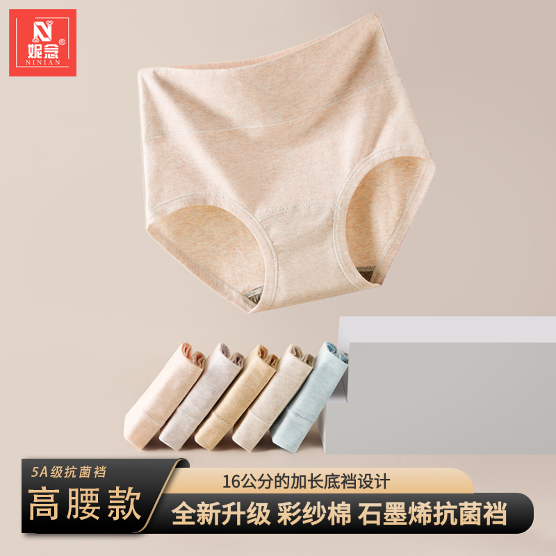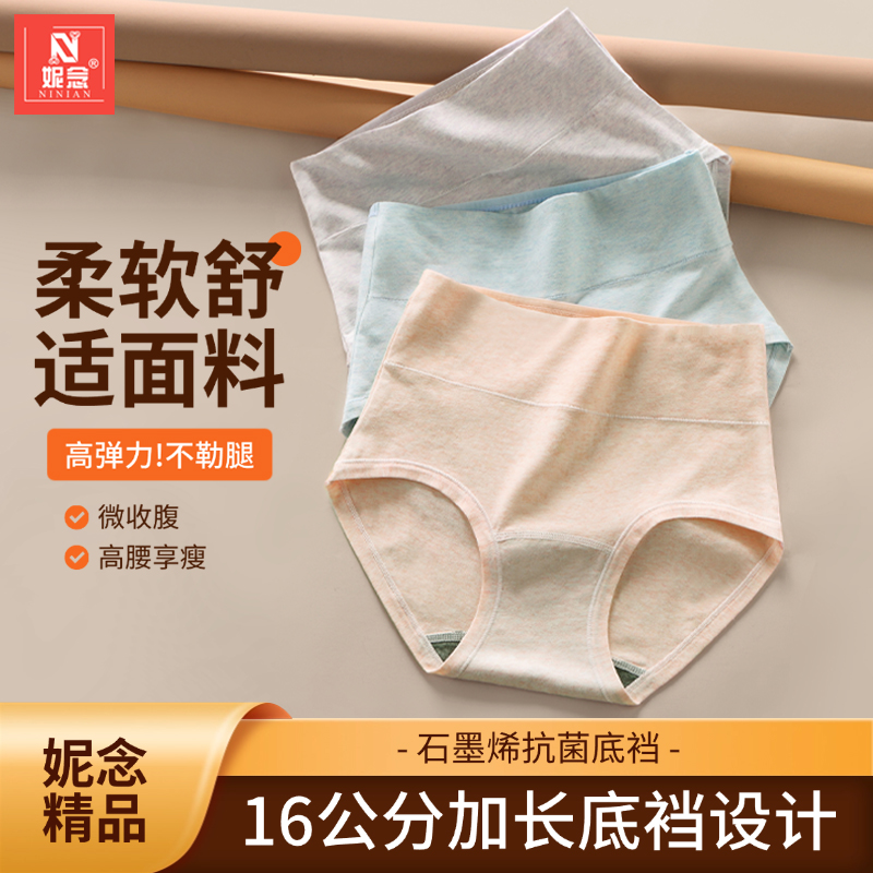 女款 抑菌无痕内裤 高腰收腹大码 妮念石墨烯抗菌加长裆棉质女士内裤