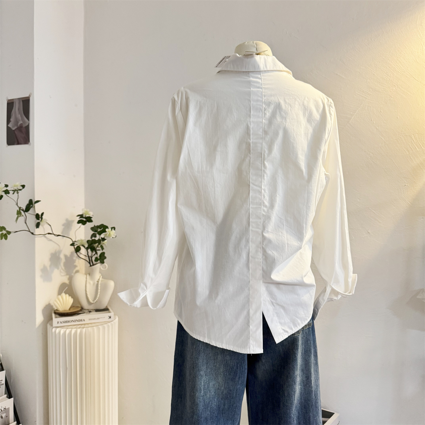 女上衣2025新款 白色短袖 夏季 工装 衬衣 通勤穿搭宽松法式 歌莉娅衬衫