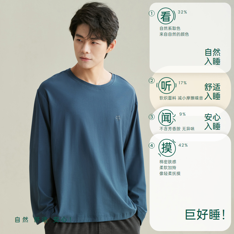 巨柔软 单件上衣男士 情侣睡衣女款 纯棉长袖 家居服 春秋季 安之伴