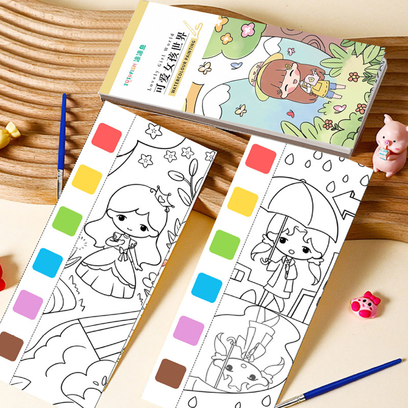 儿童涂鸦画画涂色填色DIY水彩纸幼儿园美术图画本自带颜料绘画本