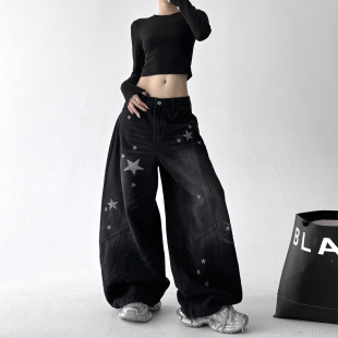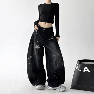 春秋高腰显瘦直筒宽松设计感休闲阔腿裤 重工水洗牛仔裤 女2025新款
