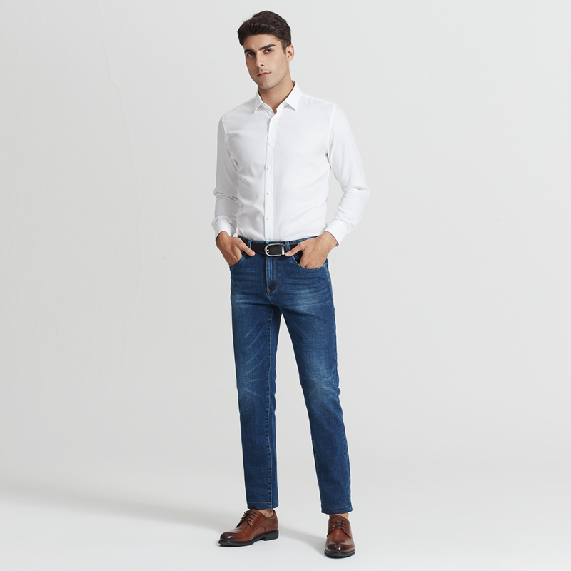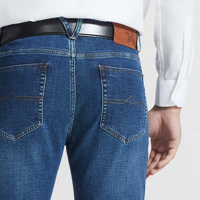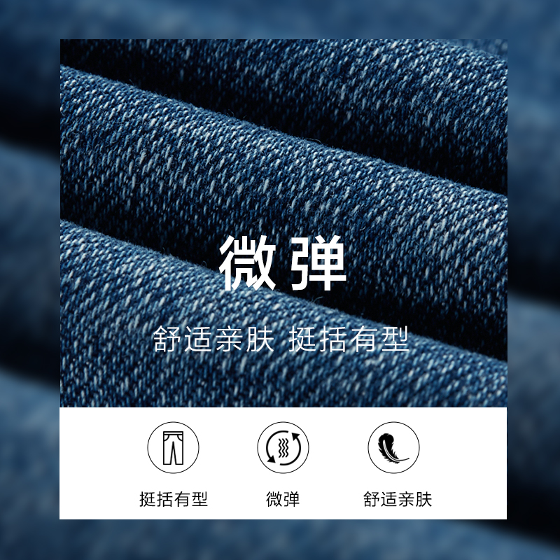 浅兰色猫须简约时尚 经典 百搭V型裤 耳修身 雅涛 牛仔裤 高棉舒适