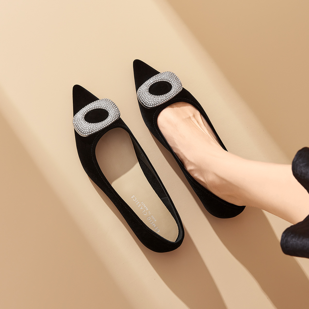 宽楦羊皮尖头细跟通勤浅口单鞋 大码 黑松露 秋冬女鞋 7or9黑色高跟鞋