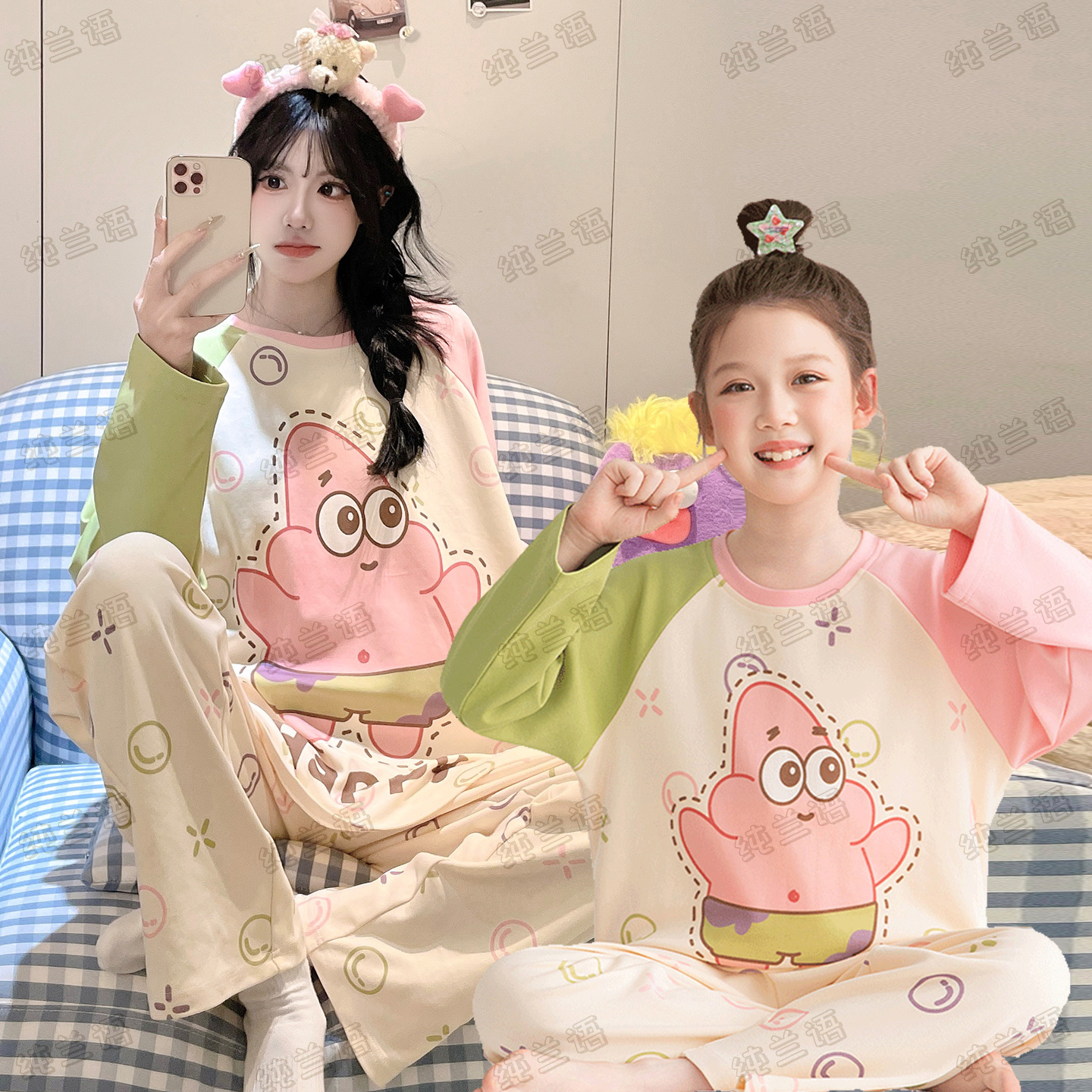 春秋季 两件套亲子母女睡衣亲肤家居服 儿童纯棉可爱腊肠狗女童长袖