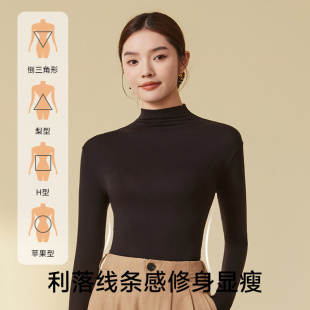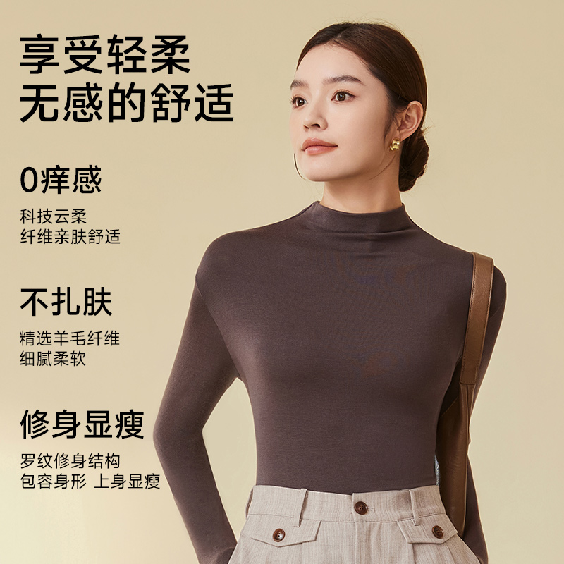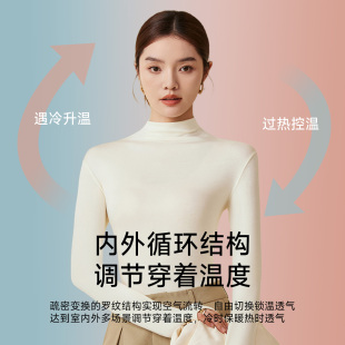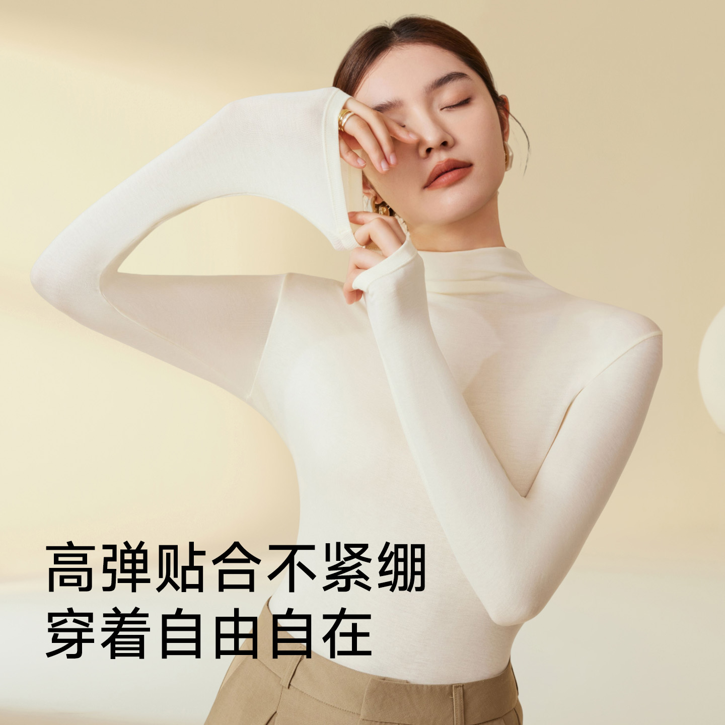 上衣 秋冬肌底内搭长袖 猫人羊毛保暖内衣女高领修身 德绒发热打底衫