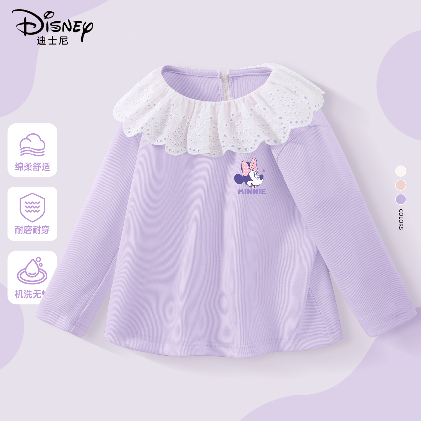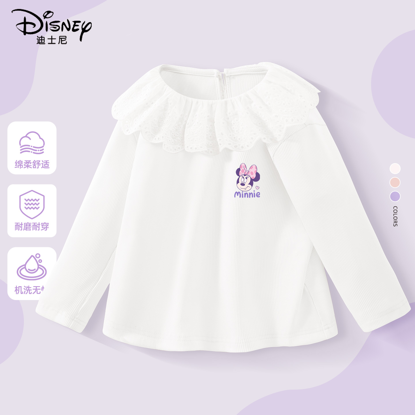 儿童秋装 迪士尼女童长袖 打底衫 洋气时髦花边秋季 上衣 t恤2025新款