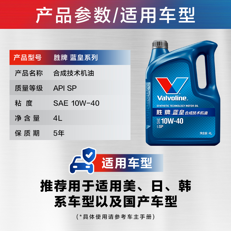 Valvoline 蓝皇系列 10W 合成技术机油发动机润滑油 胜牌