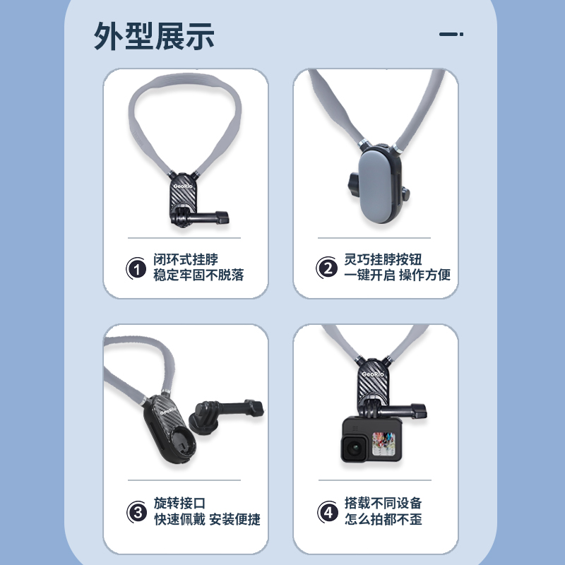 大疆Pocket3专用挂脖支架便携防抖运动相机大疆action3 5胸前挂拍摄钓鱼骑行vlog 第一人称视角 奇沃适用