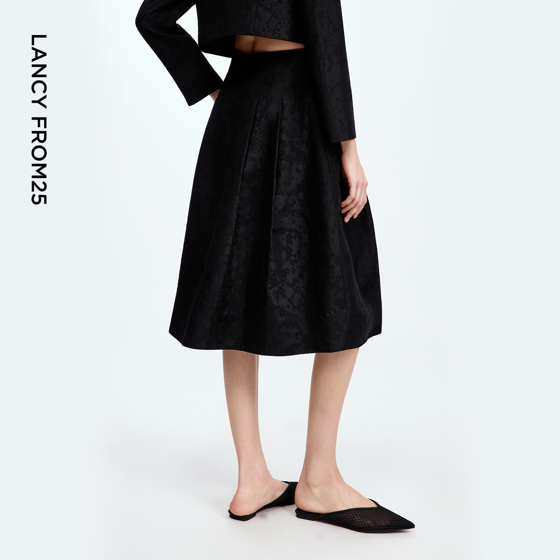 新款 气质半身裙2025年秋季 修身 朗姿提花复古a字花苞裙高级感时尚