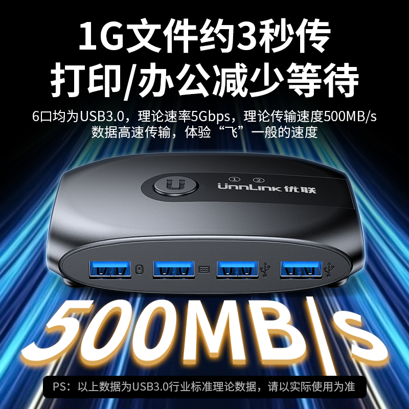 优联usb3.0kvm切换器一套 个键盘鼠标控制两台笔记本电脑主机显示器共用u盘打印机共享器转换二进四出分线器
