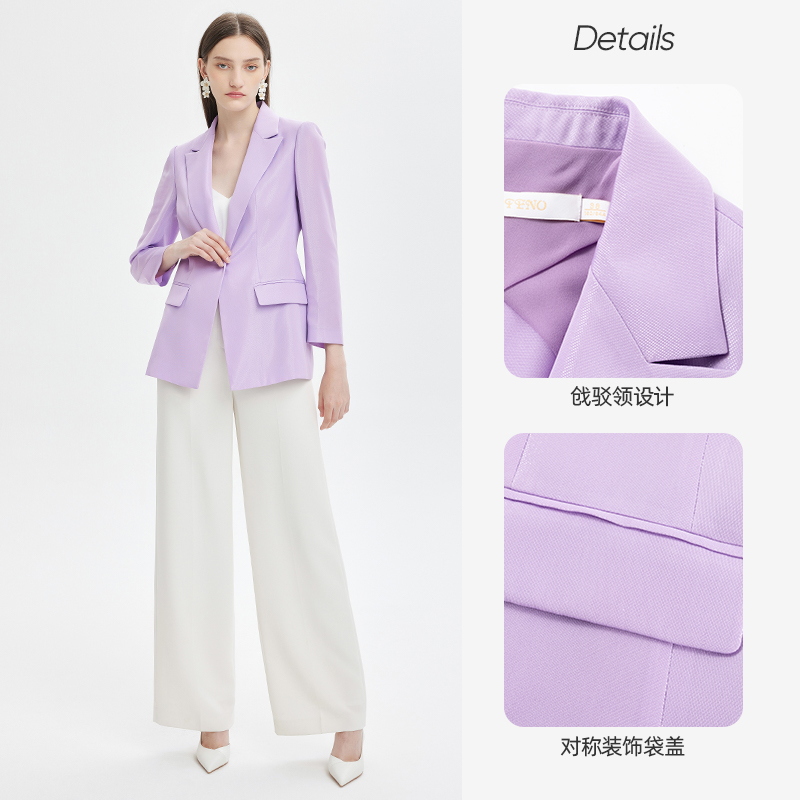 COCOBELLA高智感拼接人丝无领西装 女早秋通勤休闲气质外套SI533B