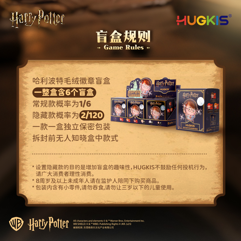 HUGKIS×哈利波特毛绒徽章盲盒可爱吧唧胸章别针包挂配饰正版 周边