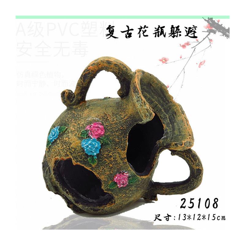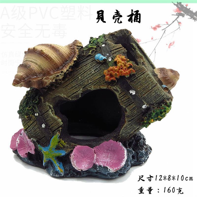 躲避屋鱼缸水族箱配件装 饰造景摆件爬虫箱树脂工艺品仿古贝壳酒桶