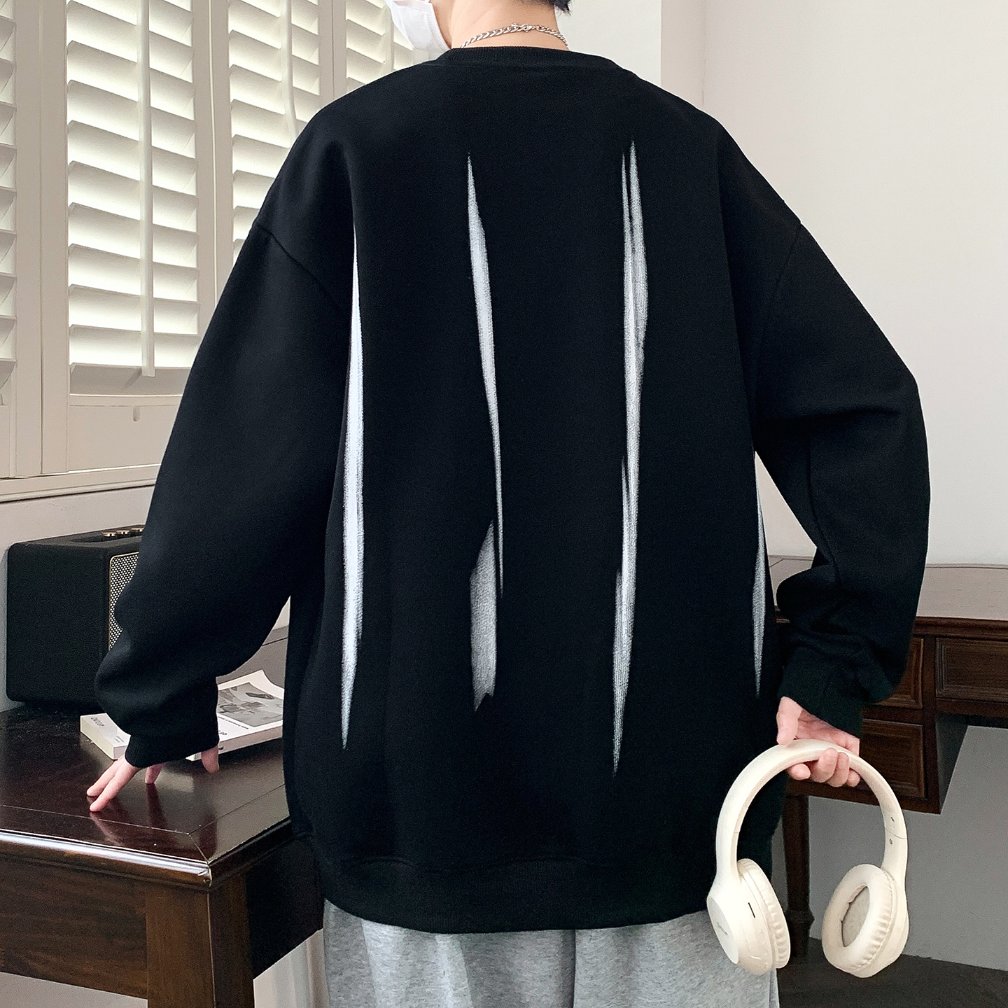 2025早秋新款 高街潮流设计感字母卫衣圆领男生百搭上衣 青少年美式