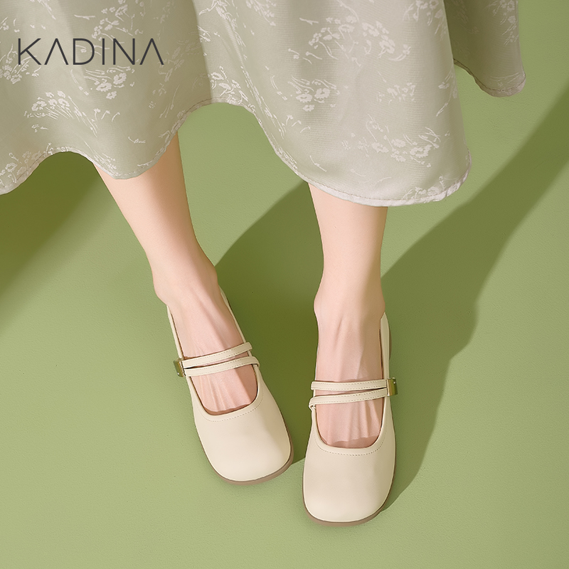 女鞋 小皮鞋 妈妈鞋 浅口法式 KL240101 平底单鞋 卡迪娜真皮玛丽珍鞋
