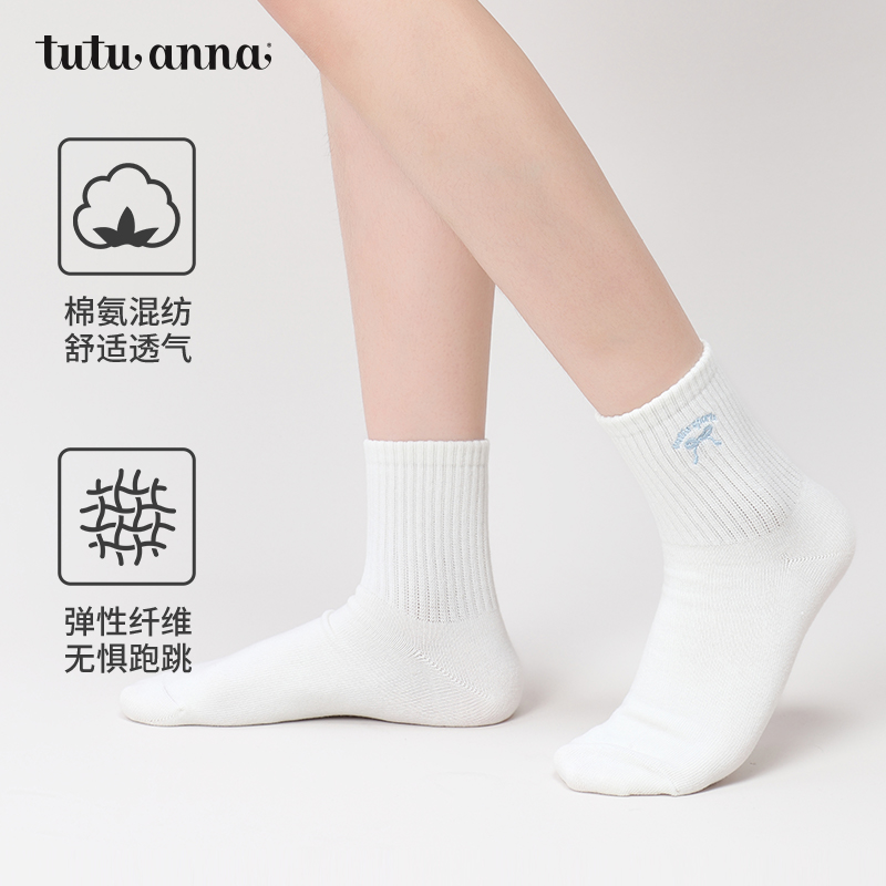 亲相见袜子女纯棉防臭中筒袜秋季 吸汗7a抗菌透气无骨白色女士短袜