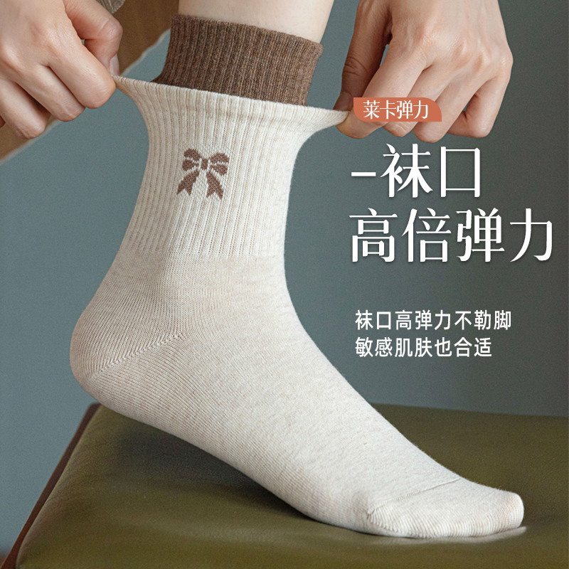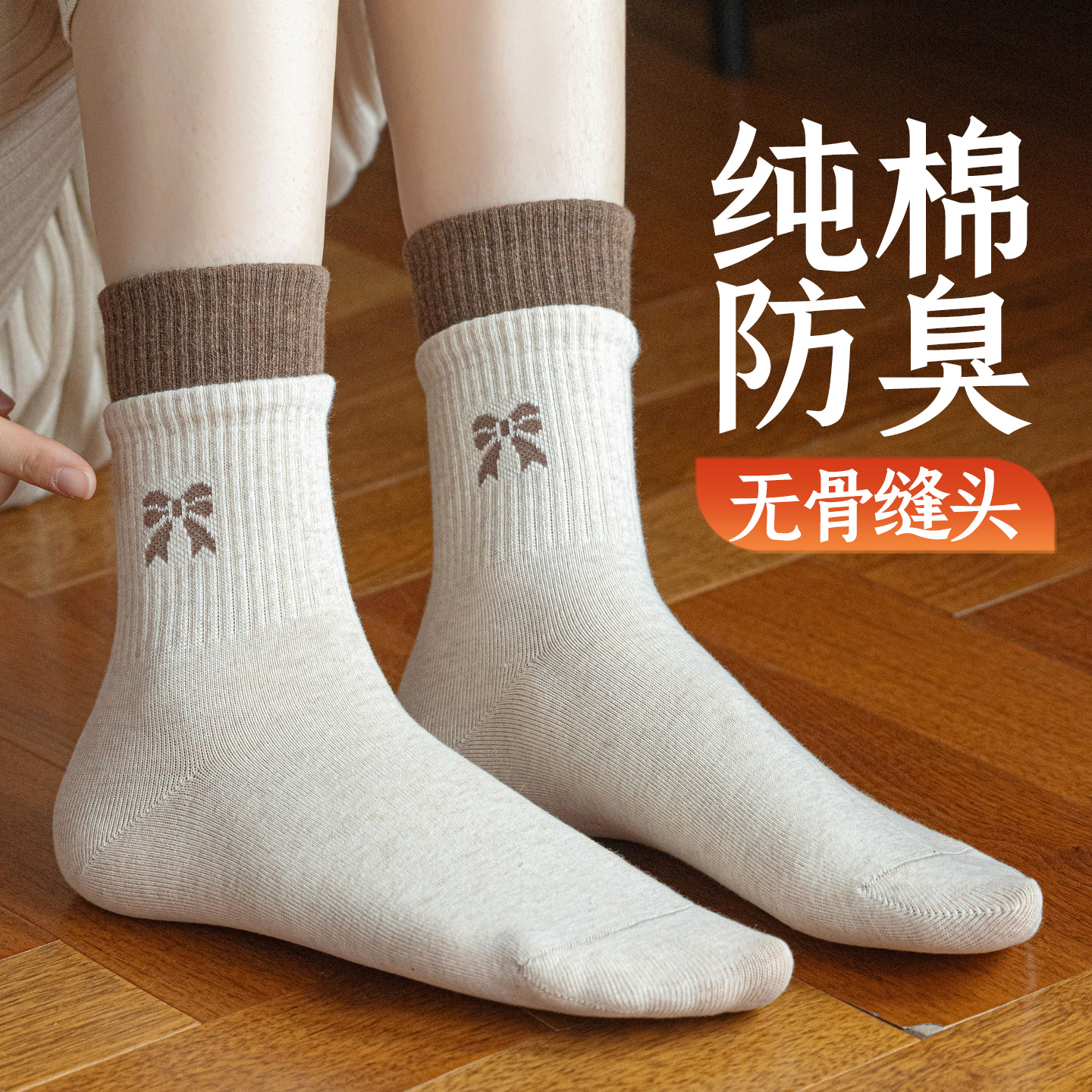 优质纯棉中筒袜子女士春秋款 厚长袜无骨 全棉吸汗防臭7a抗菌秋冬季