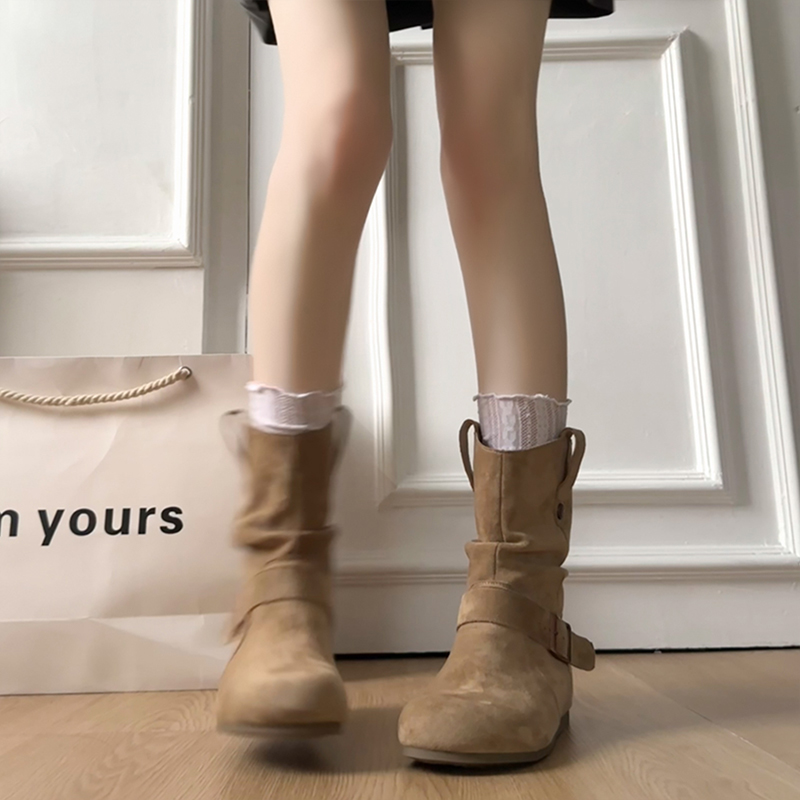 内增高勃肯短靴子女2025秋季 牛仔靴显瘦靴马丁靴棕色英伦防滑 新款