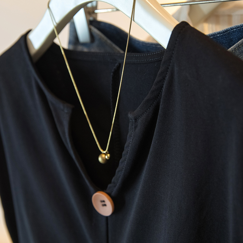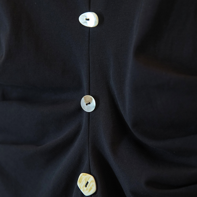 T恤小衫 收腰上衣女夏设计感韩系别致短袖 小飞袖 黑色高级感法式