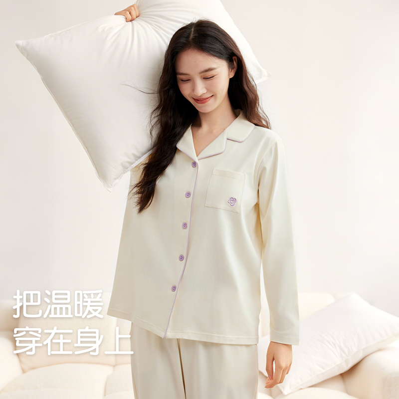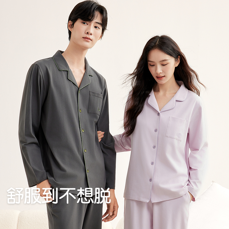 纯色简约家居服套装 情侣纯棉A类长袖 春秋磨毛睡衣2025新款 男女款