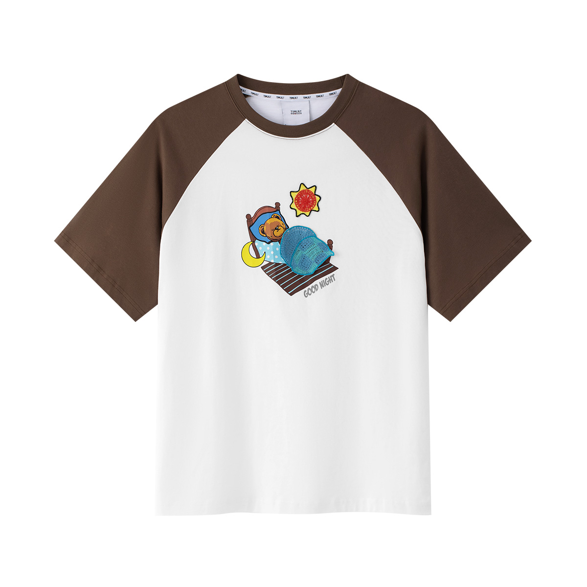百搭休闲T恤上衣 时尚 TSMLXLT晚安小熊正肩撞色短袖 女2025早秋新款