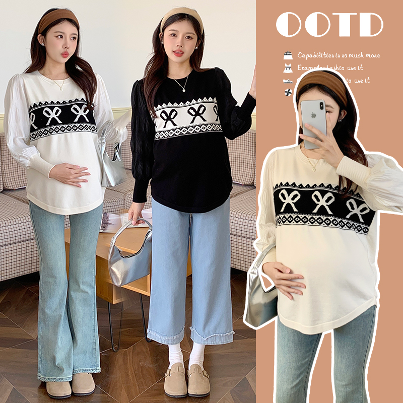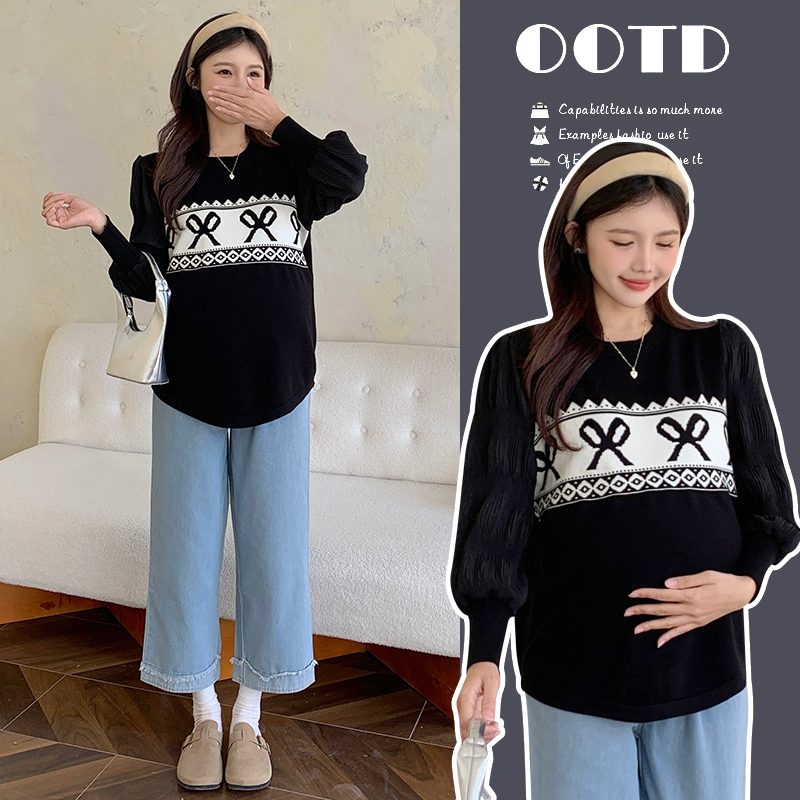 女宽松装 百搭女孕妇洋气提花孕装 秋冬上衣孕妇t恤时尚 婧麒孕妇装