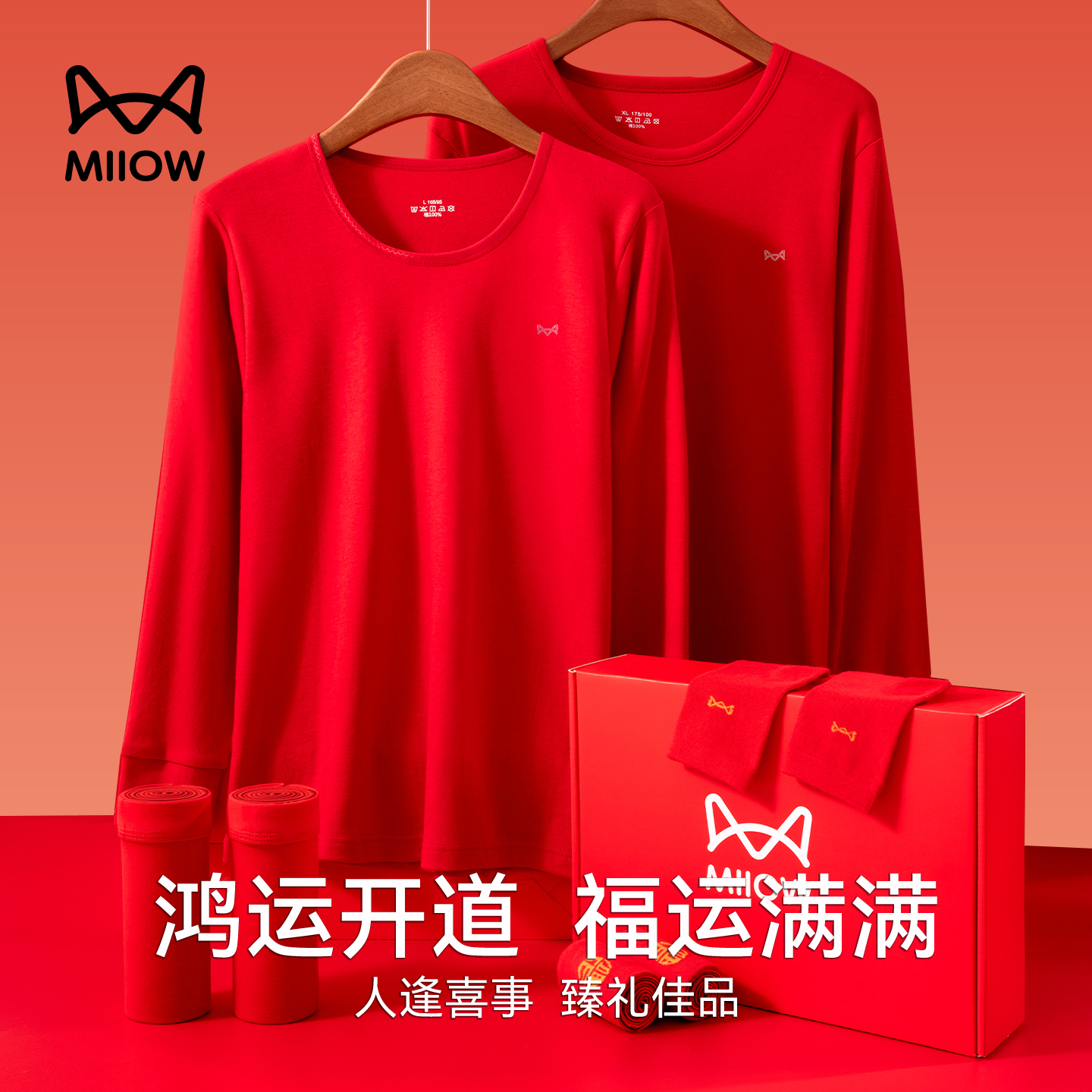 套装 结婚大红色2025蛇年秋衣秋裤 女 秋冬季 猫人本命年保暖内衣男士