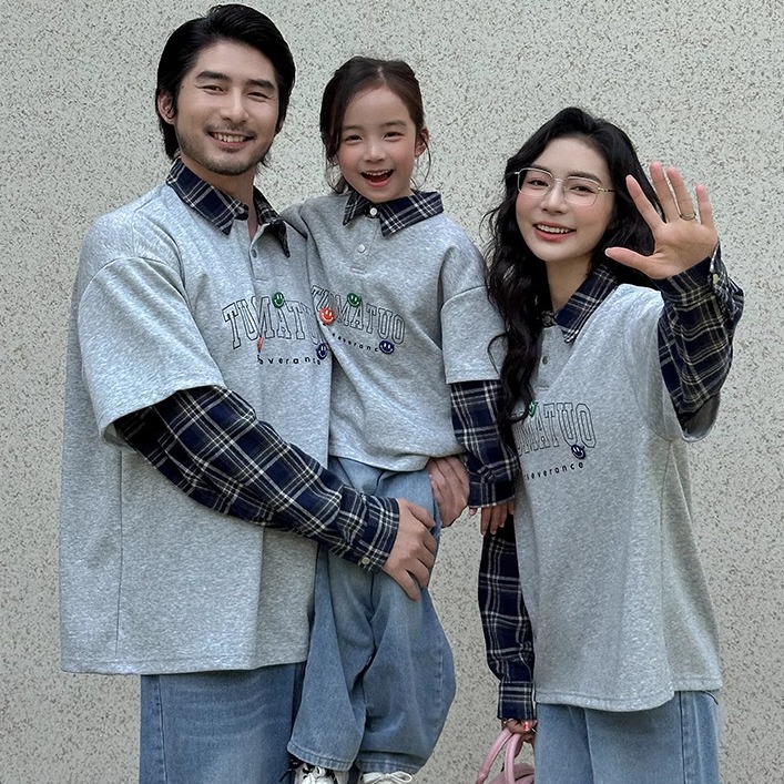 领上衣母子母女装 卫衣一家三四口韩系学院风假两件衬衫 秋装 亲子装