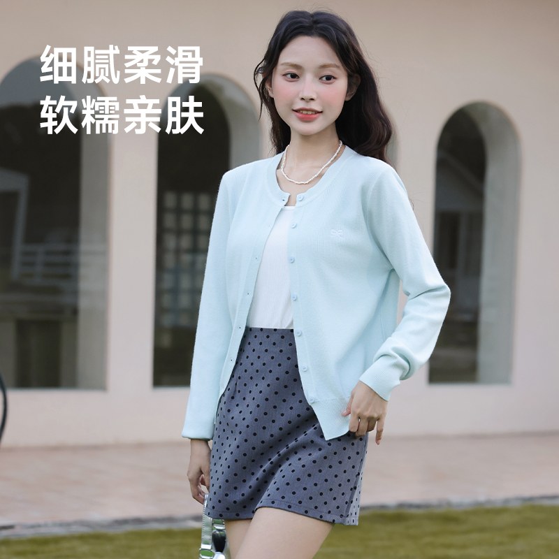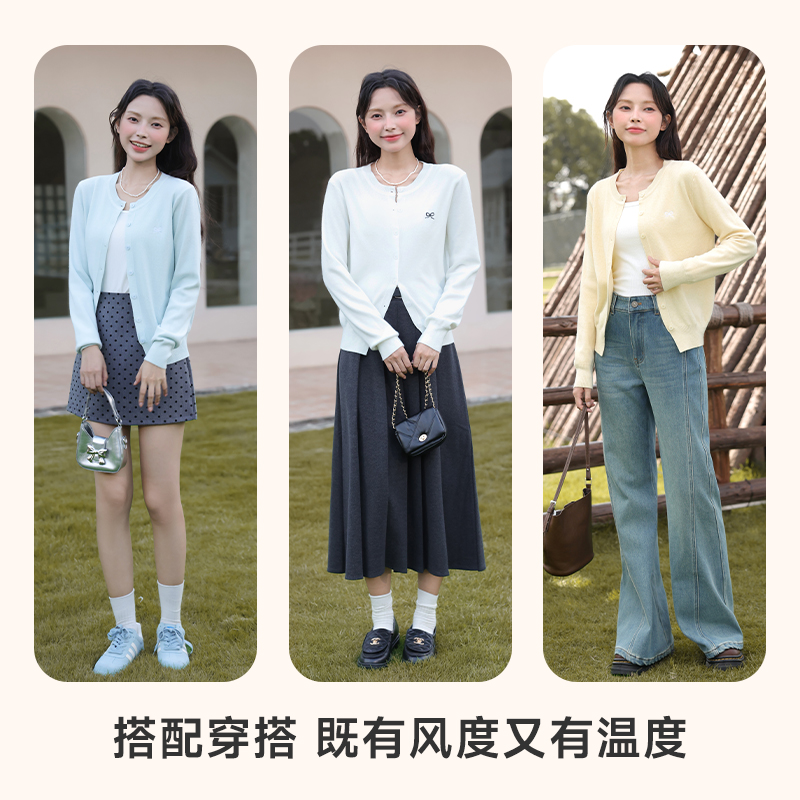 秋季 薄款 穿搭上衣H 外套毛衣女2025新款 班尼路S&K系列黑色针织开衫