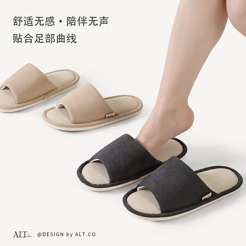 防滑居家室内情侣款 露趾棉麻秋冬季 软底静音无声家居 拖鞋 2025新款