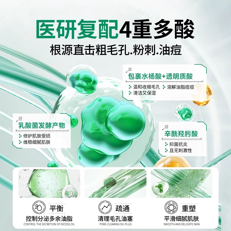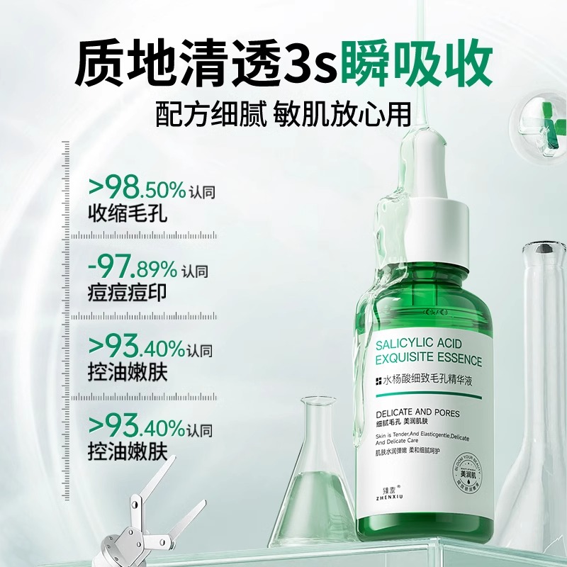水杨酸细致收缩毛孔精华液祛痘补水修护淡化痘印改善黑头粉刺闭口