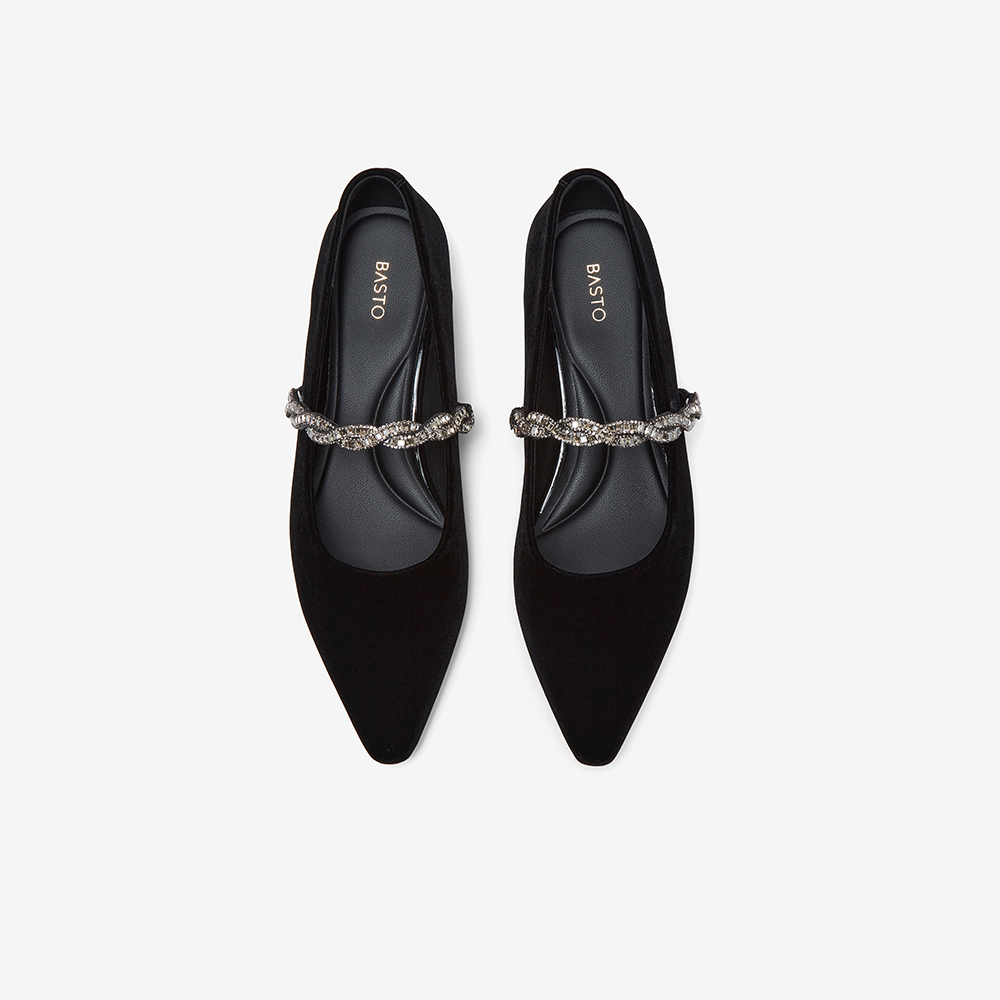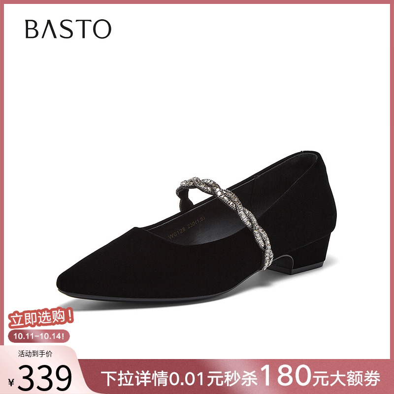 女单鞋 百思图2025秋季 法式 尖头粗跟绒面玛丽珍鞋 W0128AQ6 商场新款