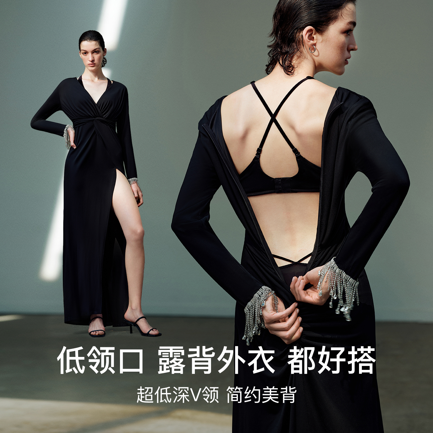 ubras轻奢系列晚宴丝绒深V真丝内衣法式 性感美背桑蚕丝文胸罩套装