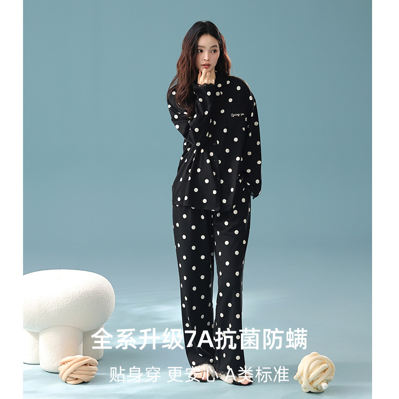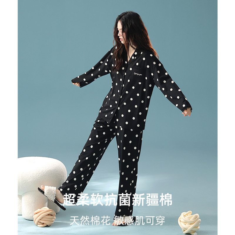 波点A类家居服套装 OLAIF抗菌新疆棉秋季 睡衣女法式 纯棉长袖 新款