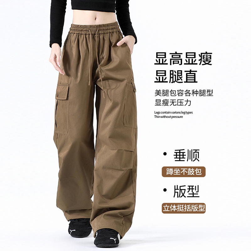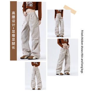 工装 高腰显瘦直筒阔腿休闲运动裤 裤 秋冬款 子 女2025新款 稻草人美式
