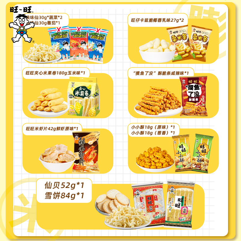 赠旺仔包旺旺膨享零食礼盒仙贝雪饼零食休闲零食浪味仙夹心米果卷