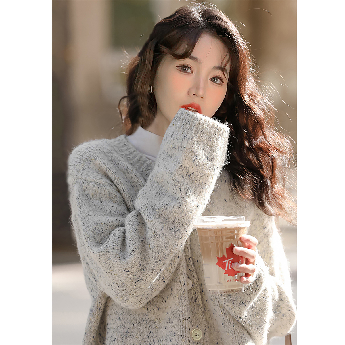 宽松百搭时尚 唐狮2025秋冬季 外套短款 花纱温柔风开衫 女毛衣新式