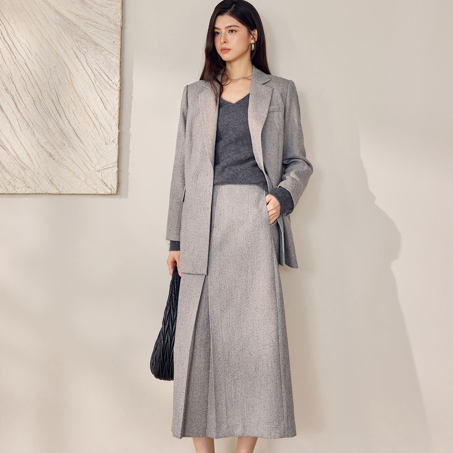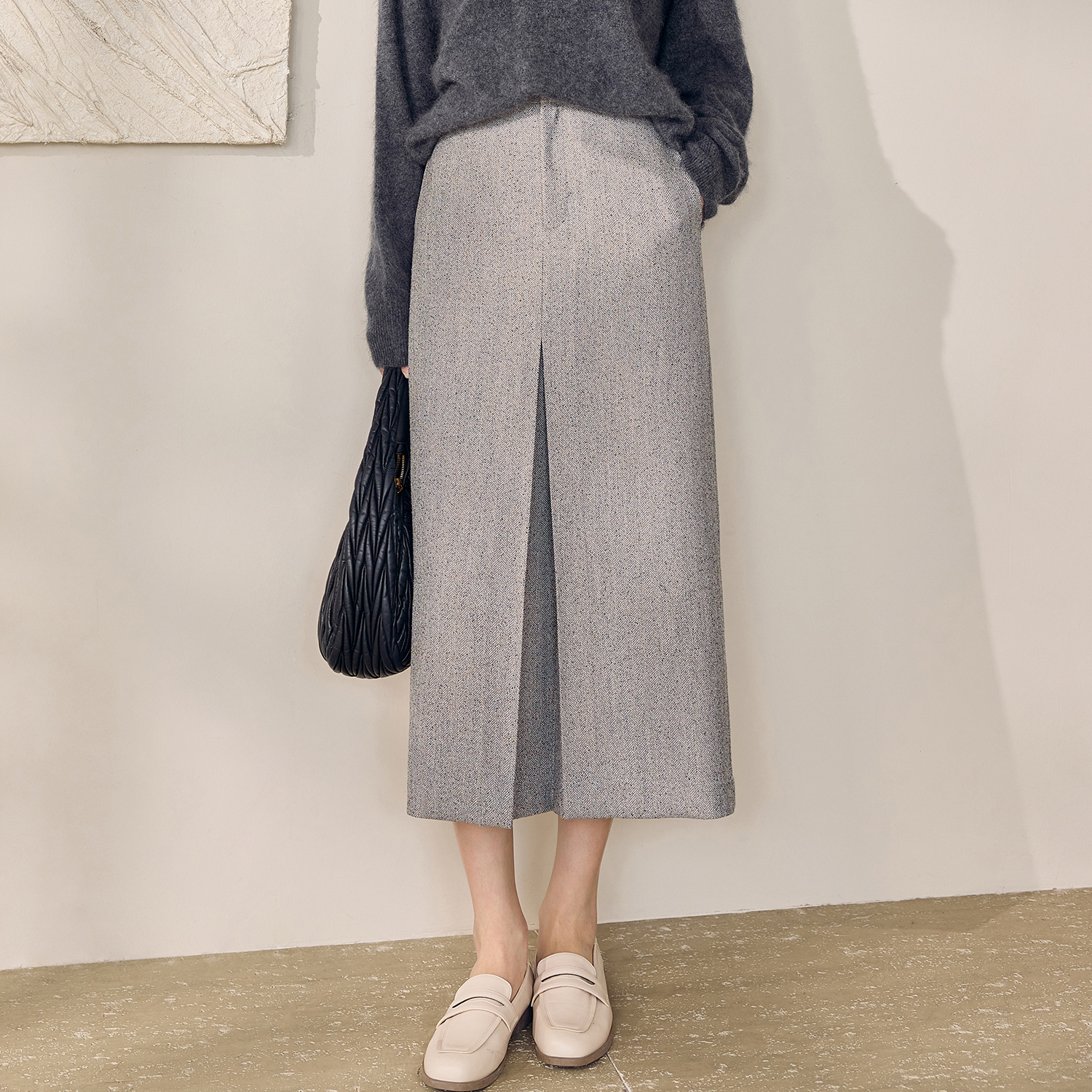 气质花纱毛呢高腰半身裙12764 2025秋冬新款 罗衣时尚 通勤职业套装