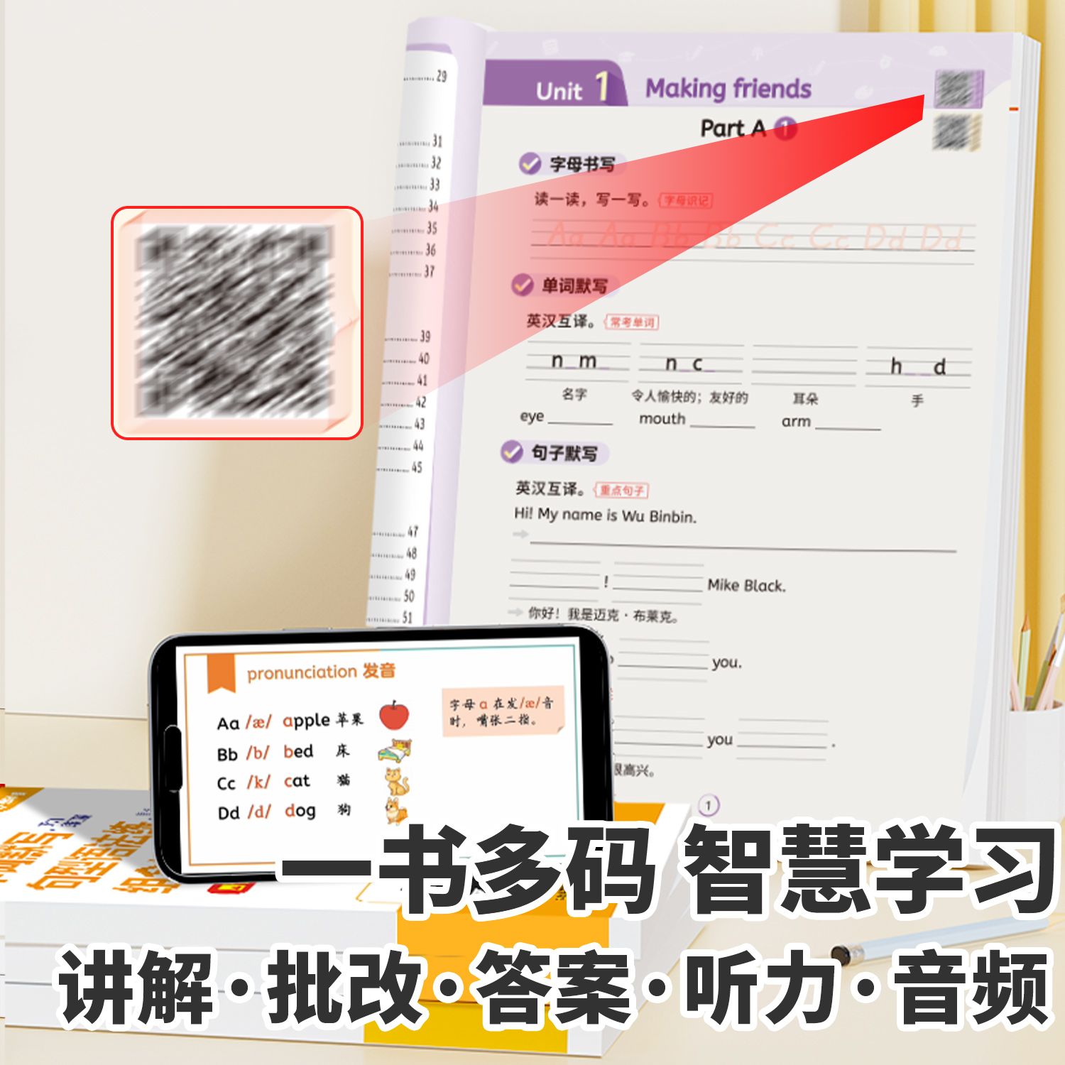 斗半匠2025新英语单词默写句型语法四合一小学三四五六年级上册同步教材练习册人教版 字母短语听力能手本阅读理解专项训练每日一练