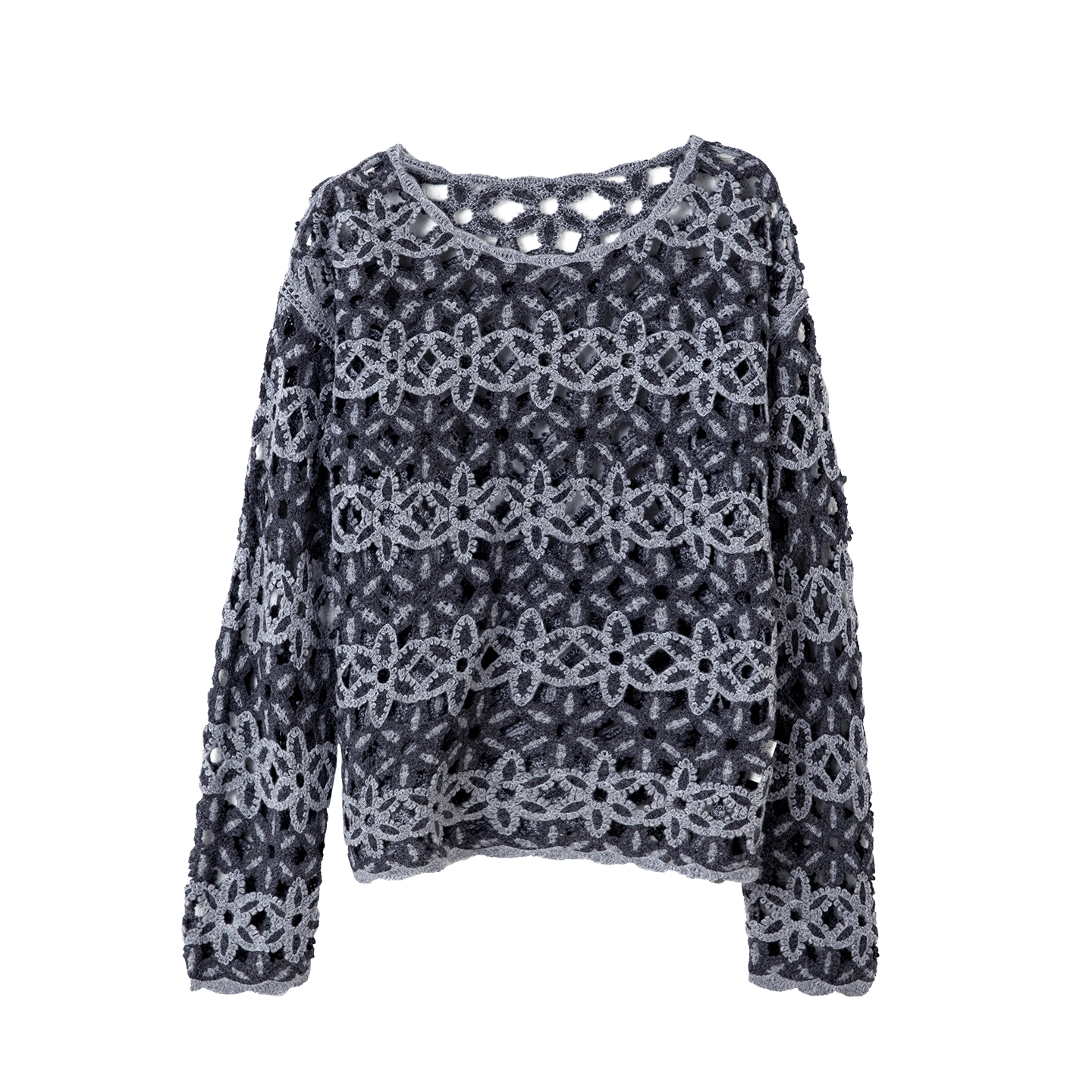 洋气针织上衣女 宽松百搭时尚 宝诗黎圆领镂空慵懒羊毛衫 2025秋季