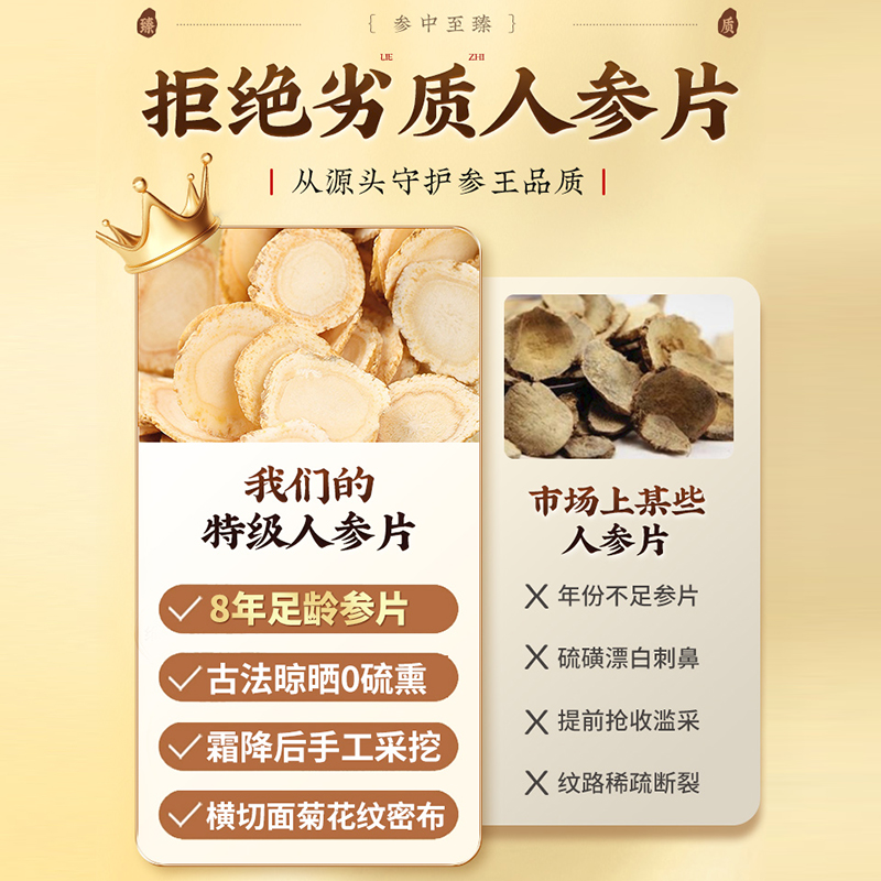 人参长白山野山参中药材野生晒参白参片切片大泡水正品 官方旗舰店
