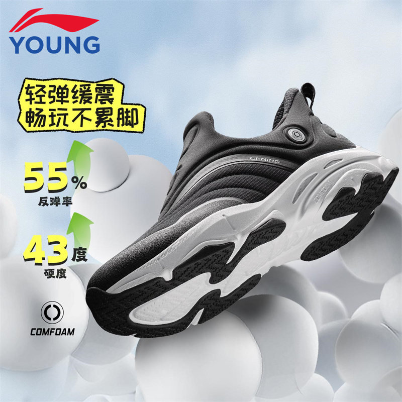 女大童免系带轻便一脚蹬鞋 李宁童鞋 新款 2025秋季 子 儿童男童运动鞋