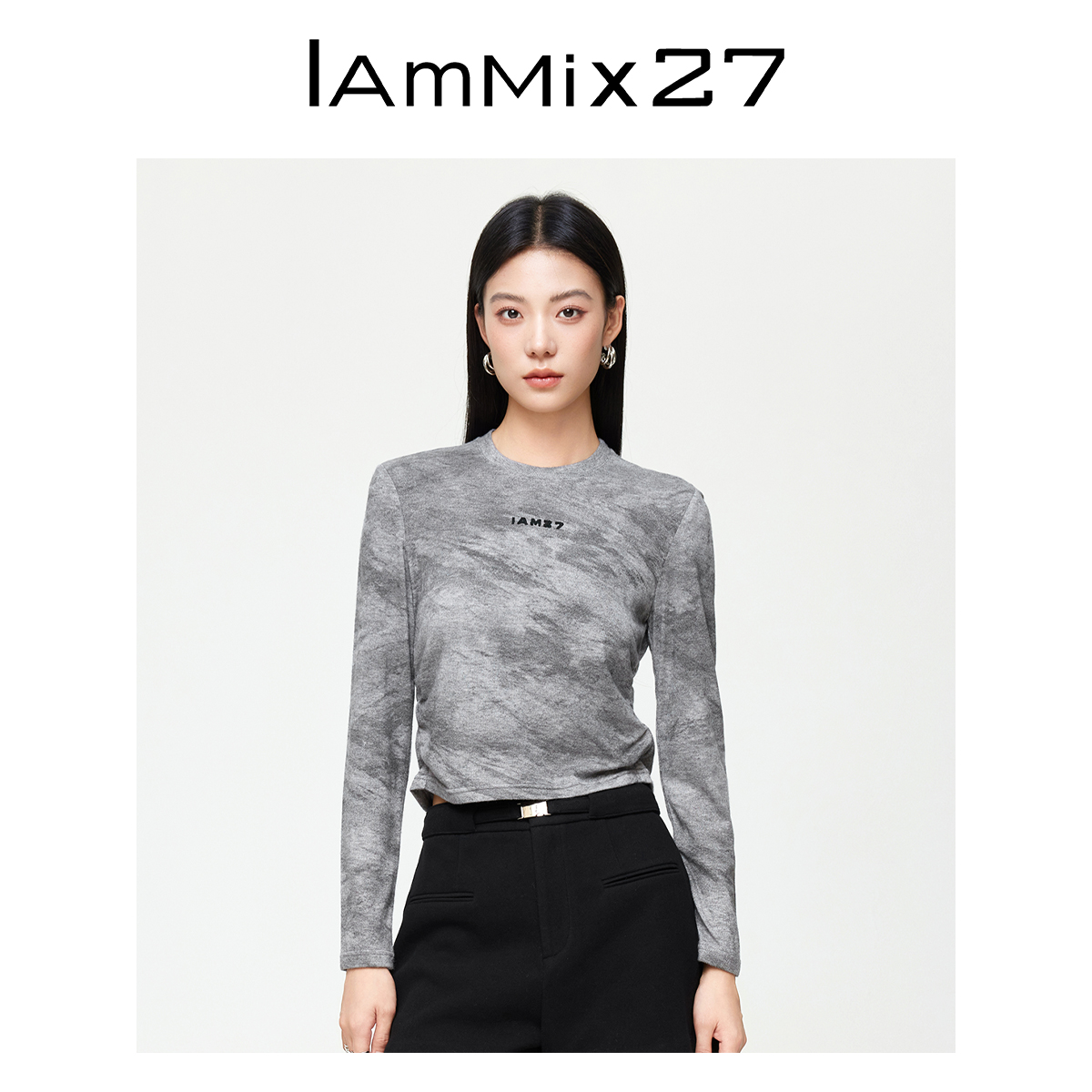 显瘦双侧抽绳内搭套头针织衫 IAmMIX27秋冬打底圆领T恤女长袖 短款